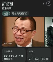 10-28 (scottding.) 新聞網址: 今天 許紹雄因病離世了 感謝你 為大家帶來歡樂 謝謝你 永遠的歡喜哥