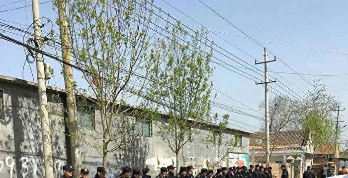 百餘名村民又來到「拆遷辦」——鎮政府討說法,數十名黑衣「特警」以及警方人員到現