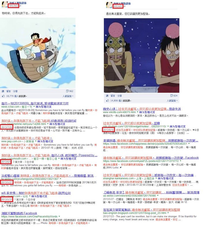 1.海賊王驚點語錄粉絲團的內容物的確有抄襲
