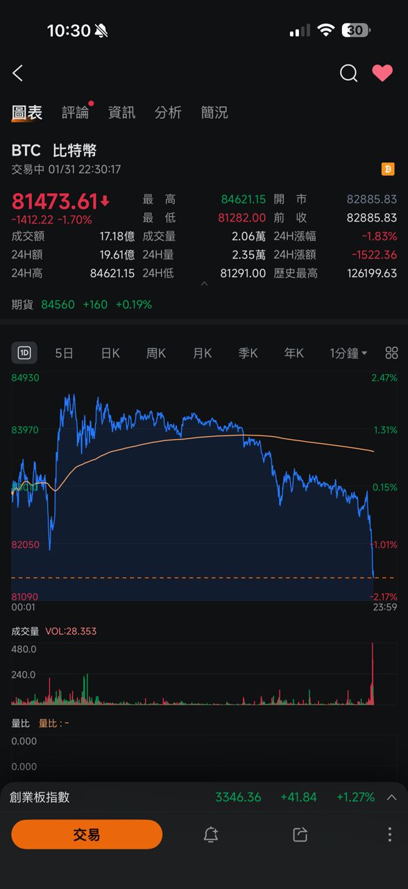 推 ccdrv: BTC直接跳水1392F 01/31 22:42