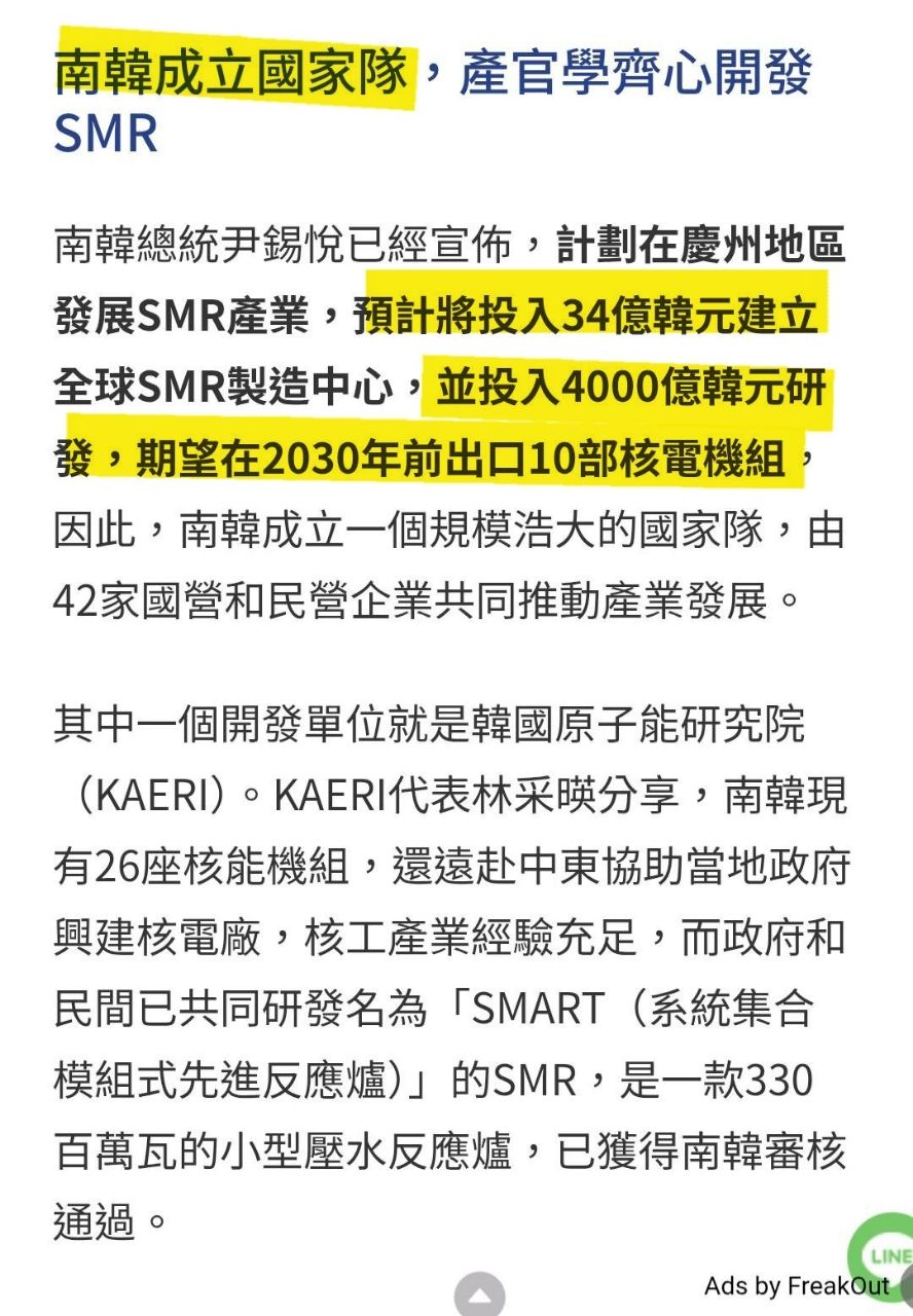 但是這並不符合台灣需求呀,SMR功率只有在300MW以下