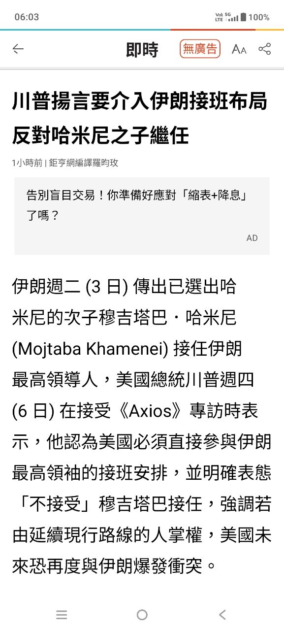 推 jjoonnyy: 川普要求伊朗繼任者需他同意, 這條件伊朗不知道會1437F 03/06 07:20