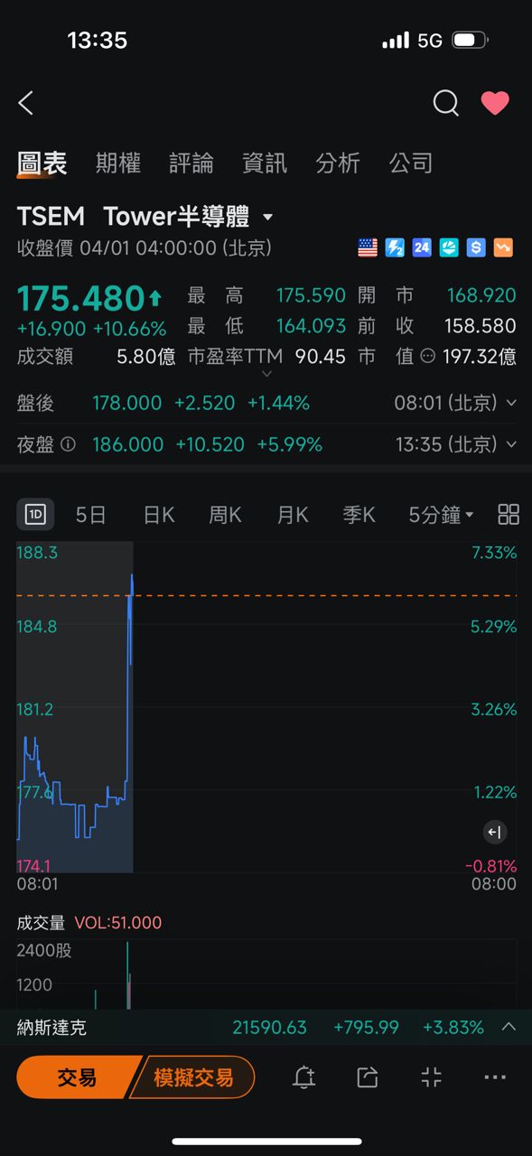 那斯達克 21590.63 ▲ 795.99 (+3.83%)