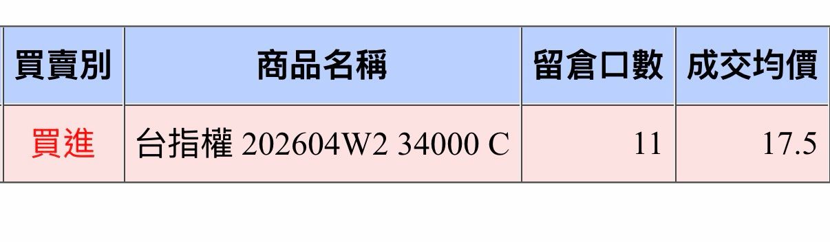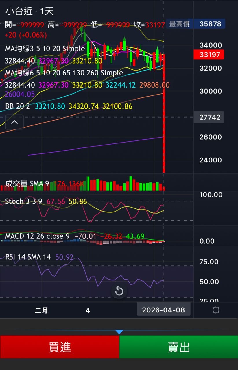 台指04 33159 ▲654 (+2.01%) 51,855口