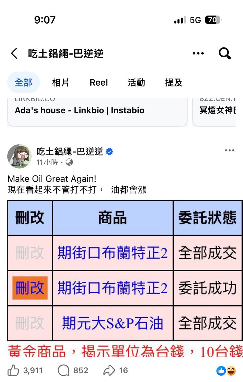→ AnnWow: 老蘇一直吹油 結果油一直跌111F 04/07 14:17