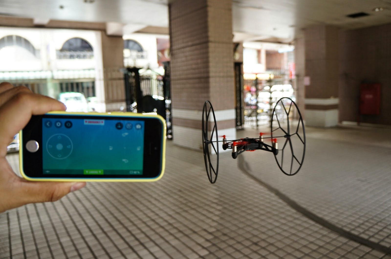 搭配上輪子可以一路從地面上滾到天花板上,室內飛行毫無障礙。如果有緊急狀況點選上