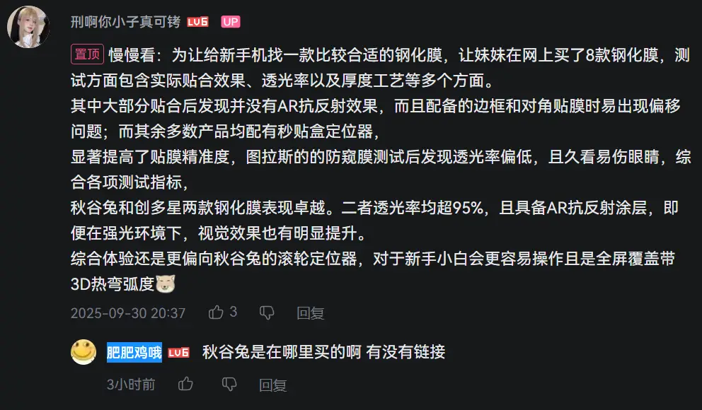 根據我這幾天在B站看了一堆保護貼測評影片 (真的超多)