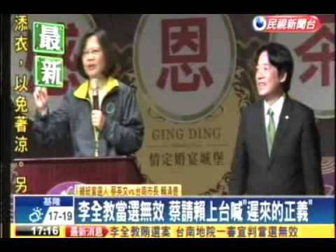 小英致詞到一半(8:40開始),現場傳來李全教當選無效的消息!!!