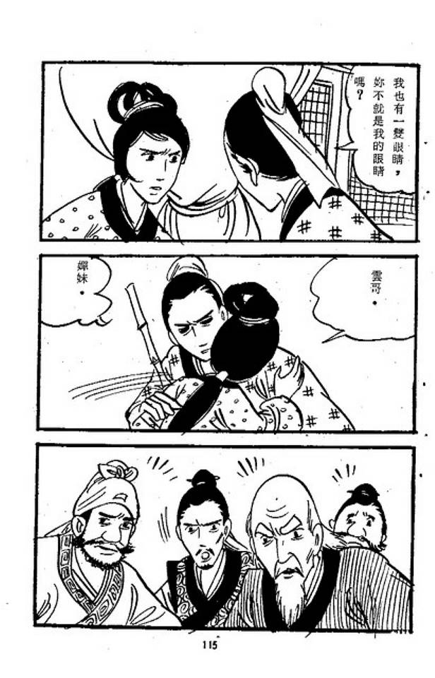 飛雲心有所感.也漸漸對連嬋動心.但仍壓抑自己的情感.始終想把連嬋還給岳國城。