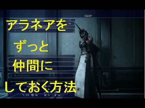Dialysis :至今為止最實用的bughttps://www.ptt.cc/bbs/C_Chat/M.1481963233.A.FBF.html【FF15】アラネアをずっとパーティに入れておく方法(注:バグ利用)&アラネアを連れて少し遊んでみた - YouTube ※バグ利用なので自己責任でお願いします データが壊れることは無かったですが、念の為バックアップして下さい。 セーブ枠2つとオートセーブ1つを使用します チョコボのいない状態です 欠点:釣りが出来ない 離脱:パーティーにアラネアいる状態でシガイと戦闘時にアラネアが救援に来ると 戦闘後にパーティにいたアラネアが離脱す...