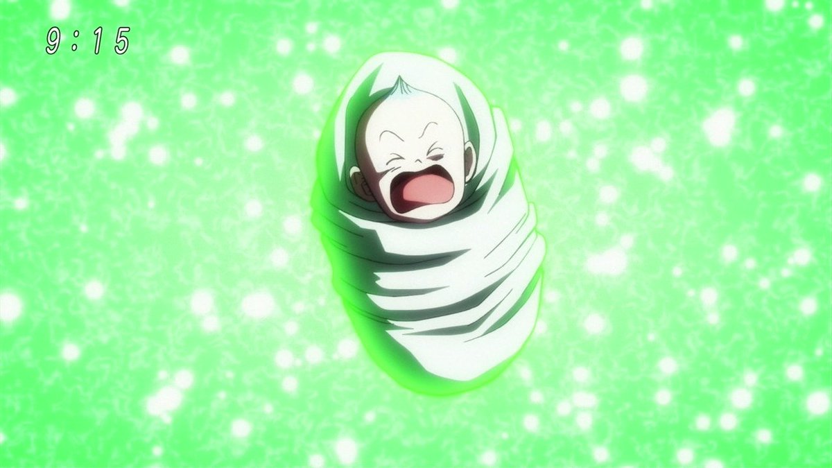 剛出生的孩子被悟空,撒旦等人先抱過,孩子被撒旦惹哭的達爾明顯感到不悅(變超賽藍)