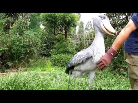草むしりを見つめるハシビロコウ - YouTube