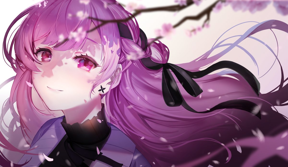 2D人物造型是桃紅色長髮與淡紫色瞳孔