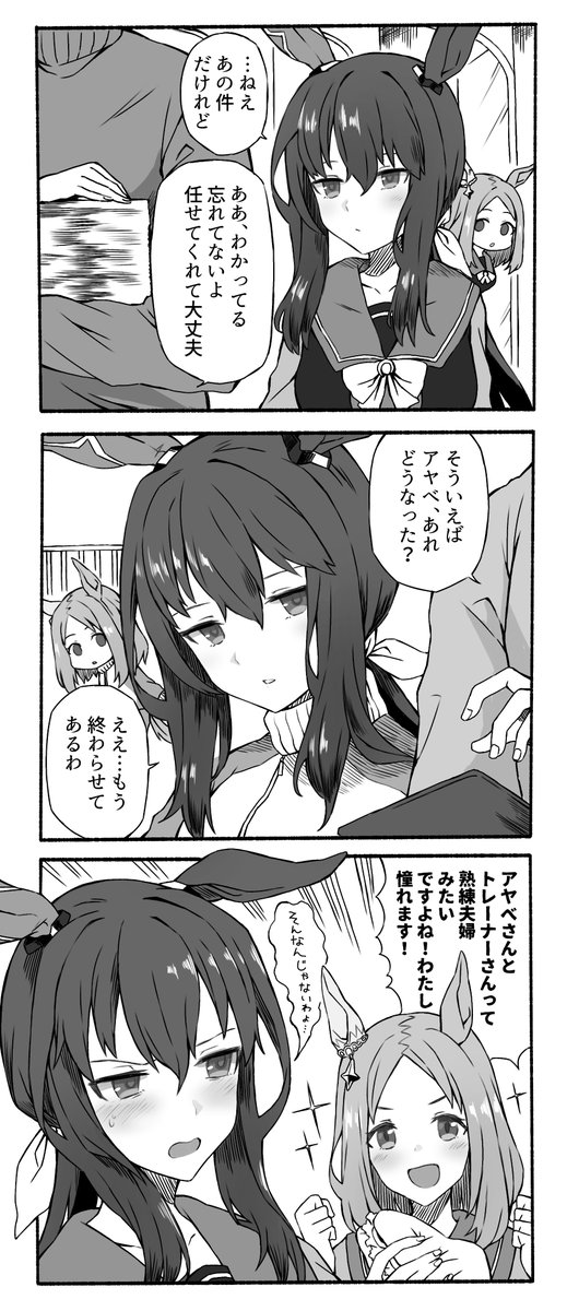 「喔喔 織姬跟訓練師看起來真像是心有靈犀的夫妻 太讓我憧憬了」