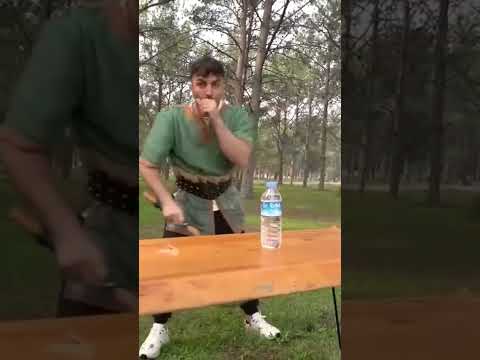 剛看到有部斧頭斬寶特瓶的影片好像也是這樣