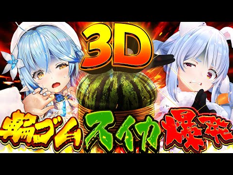 兎田ぺこら、雪花ラミィ 用橡皮筋劈開西瓜