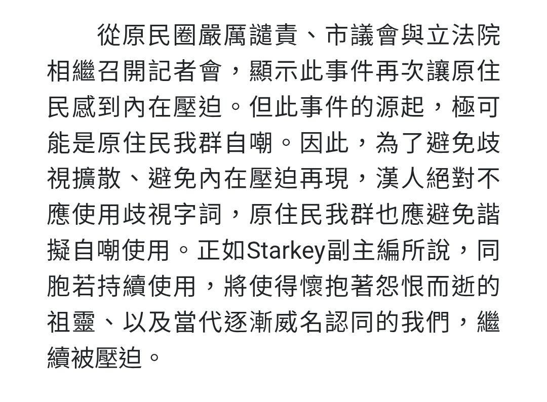 → : 台灣也發生過,原住民講歧視原住民的笑話被原住民出征30F 11/11 17:23