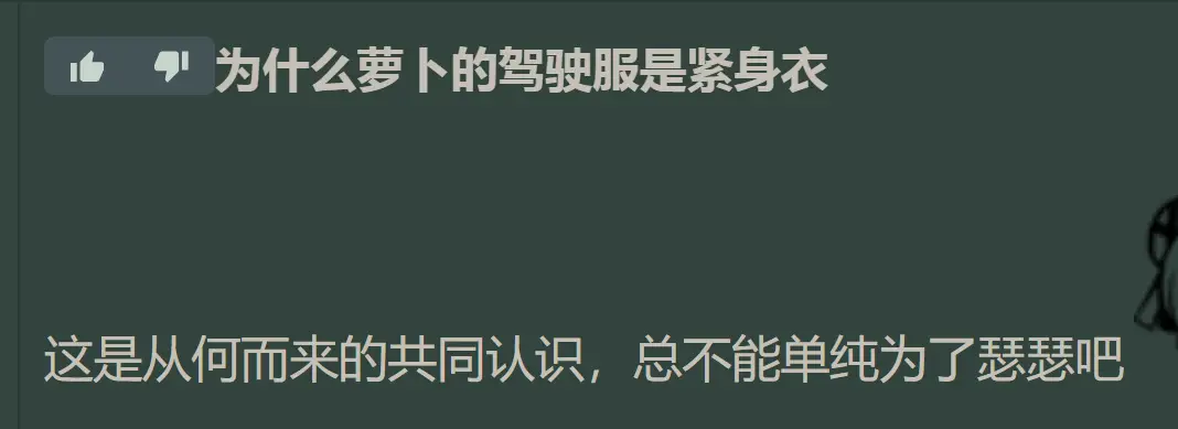 → : 而賽車飛機駕駛服也有點機能服這方面傾向,而為了瑟瑟進17F 11/24 11:24