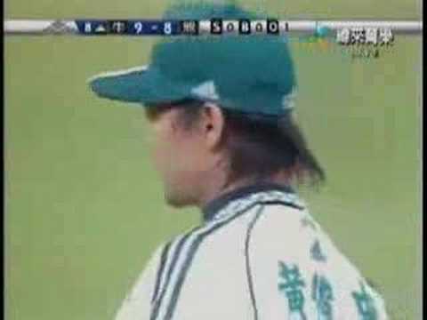 有趣的是3:05秒那個NP苦主~~是現任總教練喔XD 投手還是剛進職棒的阿福