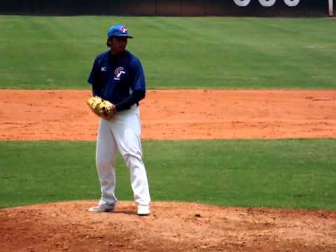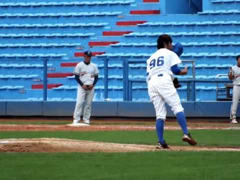 擔任投手的他就比較沒有吸睛之處,球速在130出頭,主要靠滑球對付打者,