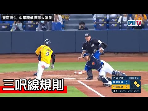 → : 影片截的規則是說 "那一刻跑者若偏離3呎線則出局"