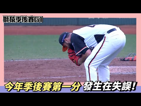 獅帝芬傳一壘傳短了 讓樂天攻下挑戰賽第一分