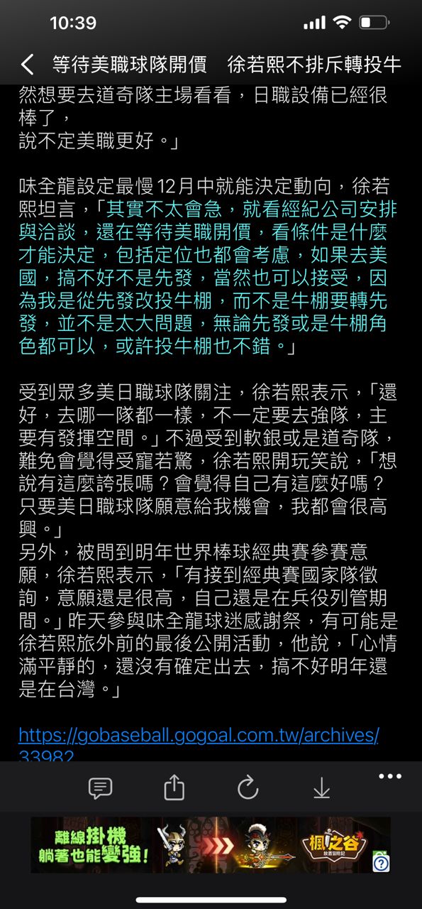 → : 到美國當少爺,徐是只能拿4*萬然後春訓搶牛棚名單