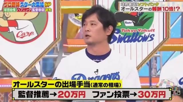 涌井:但我打聽到的傳聞,軟銀隊在監督推薦這部分是200萬圓,10倍,球迷投票是