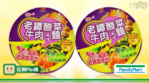 全家-統一老罈酸菜牛肉風味麵2碗35元-歷經2年研發,嚐遍上千種配方,使將酸菜與牛肉完美揉合,創造出正宗四川微酸辣風味的美味泡麵! - - 17LIFE 17P好康, 福利團購, 訂餐系統