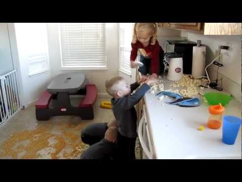 Twins Help Make Huge Popcorn Mess in Kitchen - YouTube