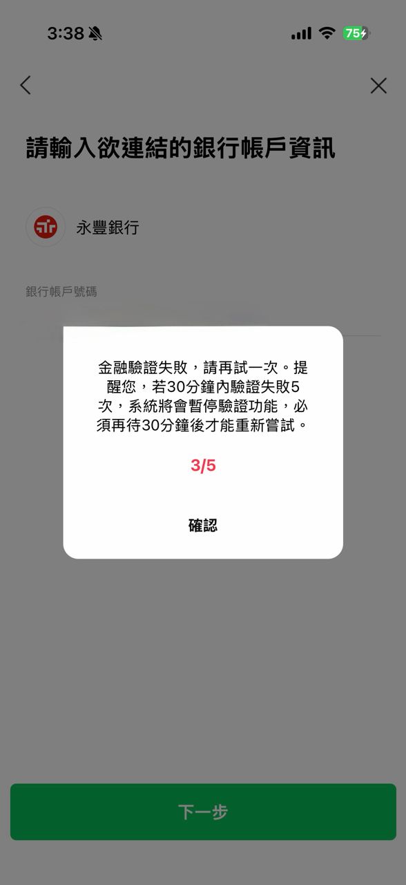 → : 暫時無法連結銀行帳戶,請稍後再試。267F 111.83.170.40 台灣 12/03 21:11