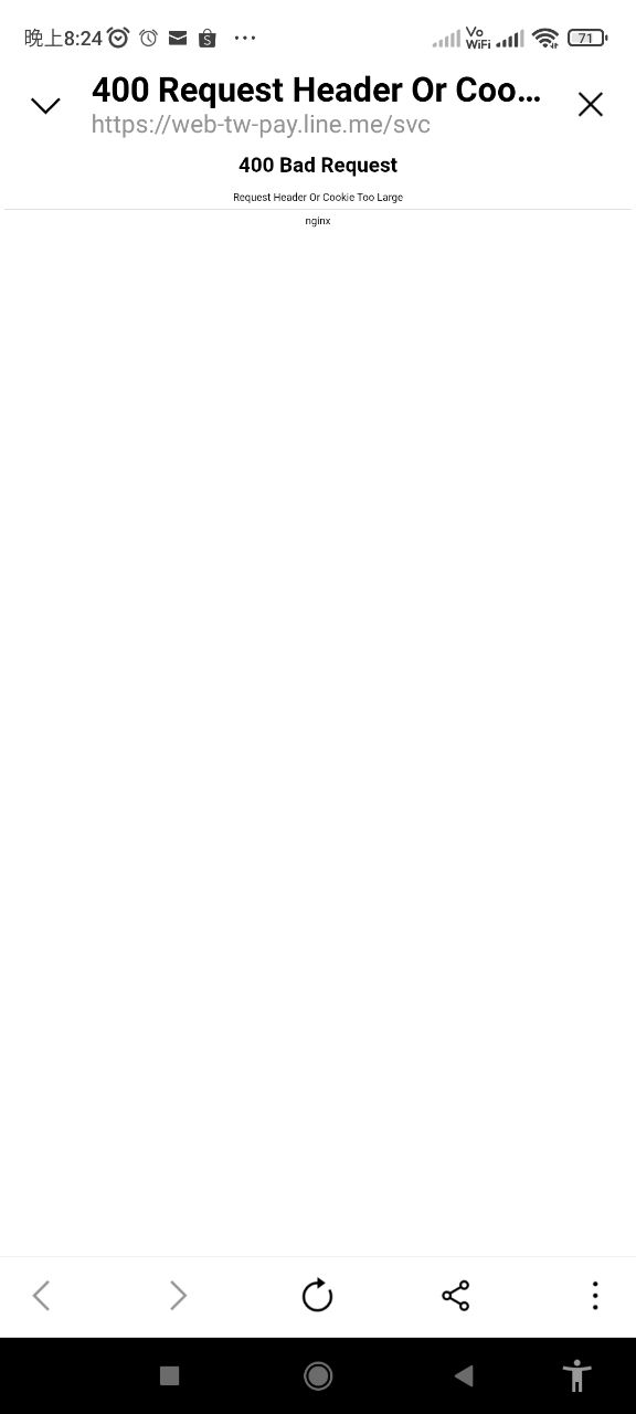 → : 了 跳轉回LINE裡面又跳錯誤
