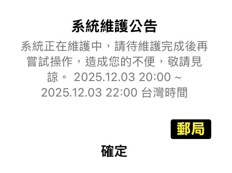 → : 所以郵局不能綁是因為在維修是嗎232F 27.51.90.227 台灣 12/03 20:07