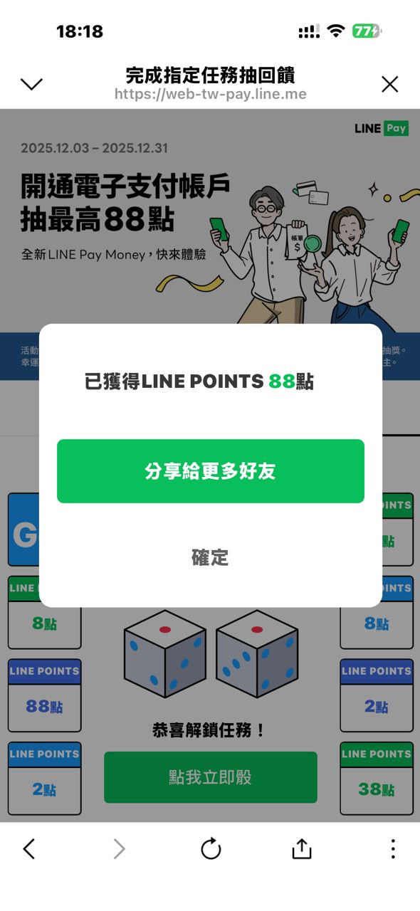 惠,包括:開通帳戶抽最高LINE POINTS 88點;首次連結16家指定銀行送