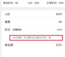 推 : 生日折價券很好用,滿100就可以折172F 106.64.65.204 台灣 12/24 09:45