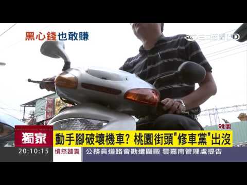 【獨家】動手腳破壞機車?桃園街頭「修車黨」出沒|三立新聞台 - YouTube 車子壞了,馬上有人現身說能幫你修,您會相信嗎?桃園中壢最近人心惶惶,有民眾車子發不動,之後馬上被一名中年男子搭訕,自稱是修車師傅的人,就這麼剛好身上還有帶工具和零件,不到五分鐘馬上讓車子發動,但是堅稱零件是新的,必須索取材料費700到1000元不等,很多人為了省事當場付現金,但事後才覺得怪怪的,求證車行發現,根本...