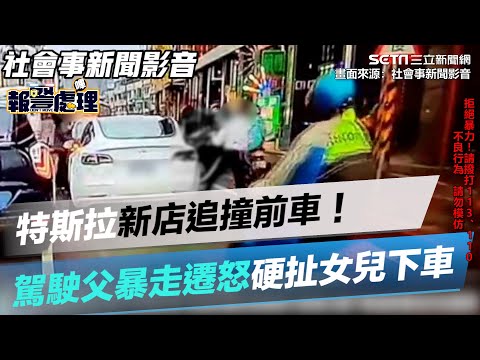 特斯拉新店追撞前車 駕駛父暴走遷怒 硬扯女兒下車還怒砸書包