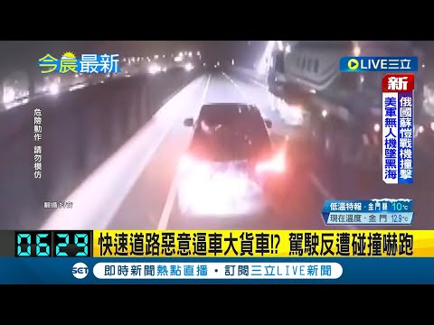 急剎逼逼逼!自小客車撞大車 險遭夾殺加速逃離