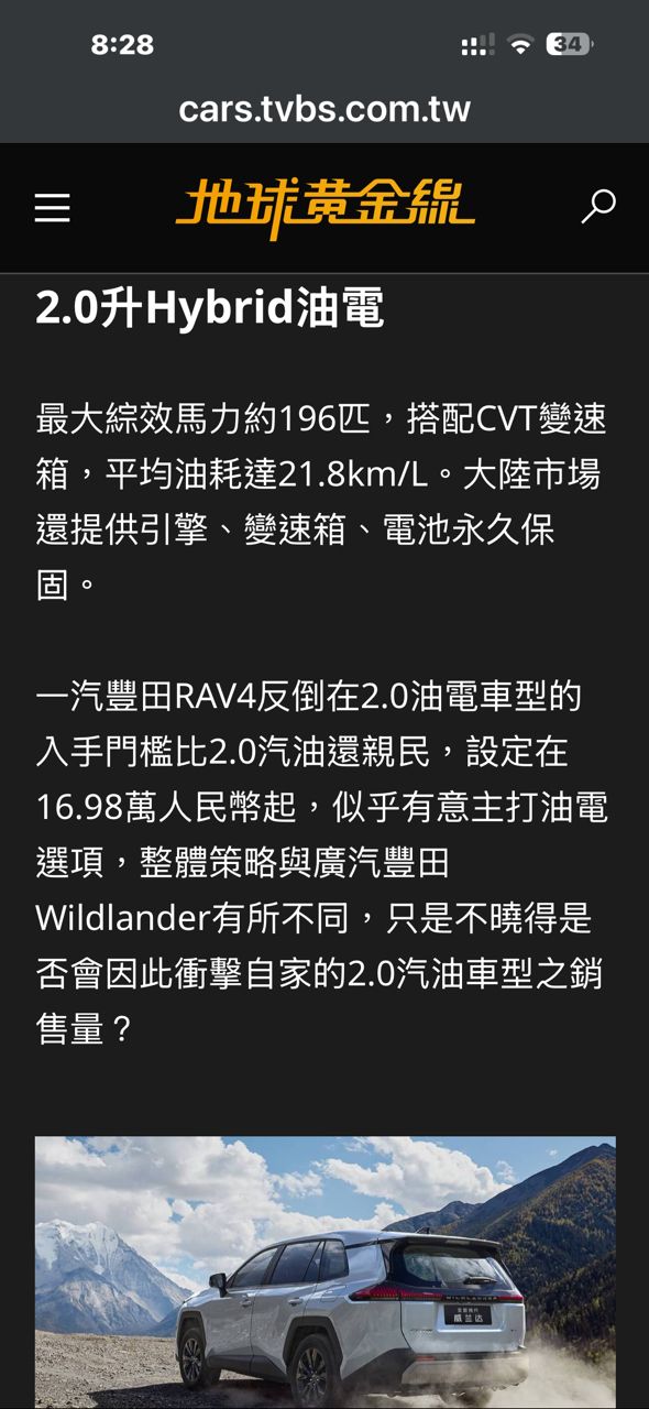 推 : 國外CC有顆2.0L油電M20A, RAV4車太重不適合289F 12/24 20:36