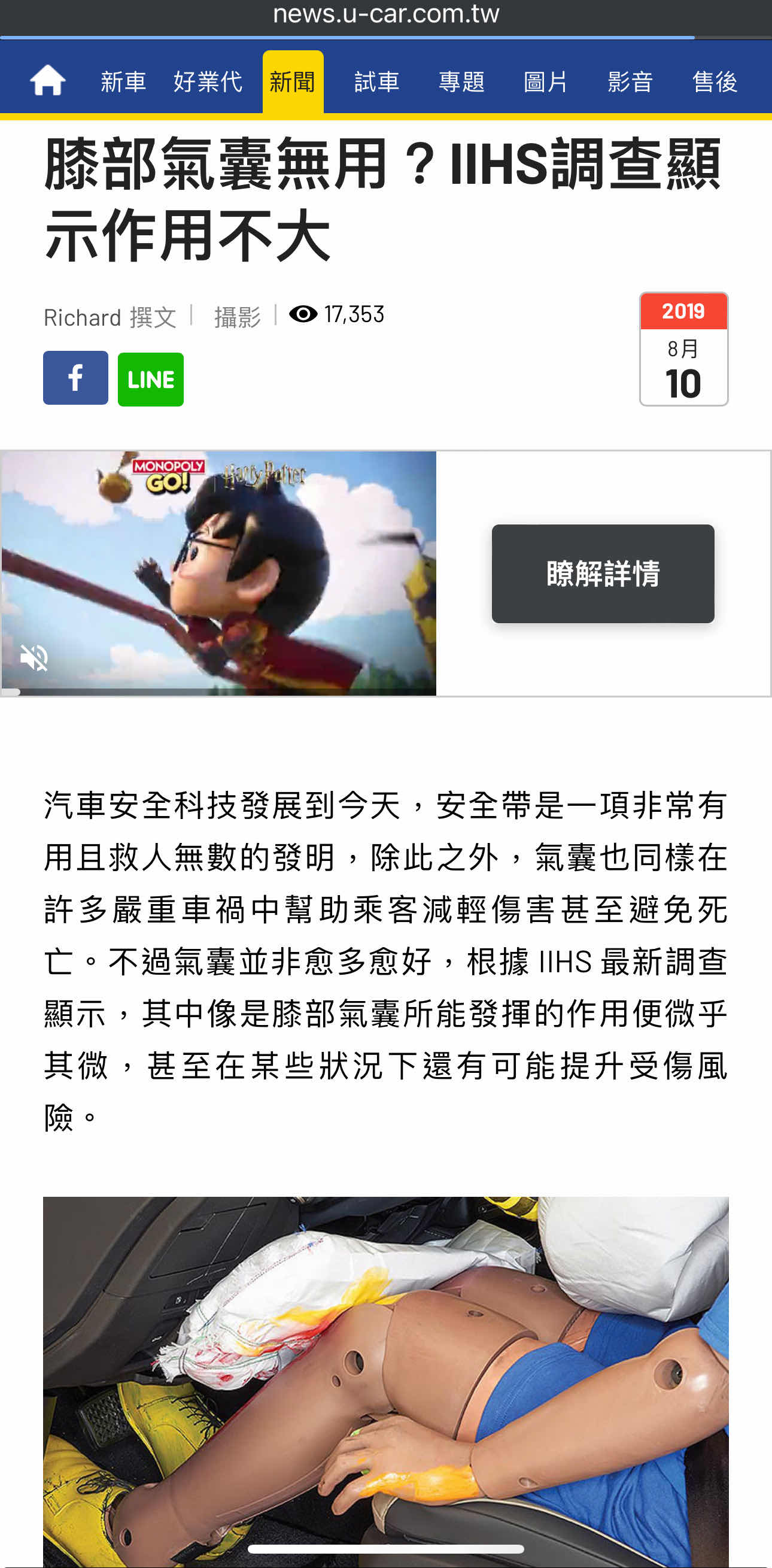 → : 沒有?希望也能像iihs那樣公布假人的受力大小,不
