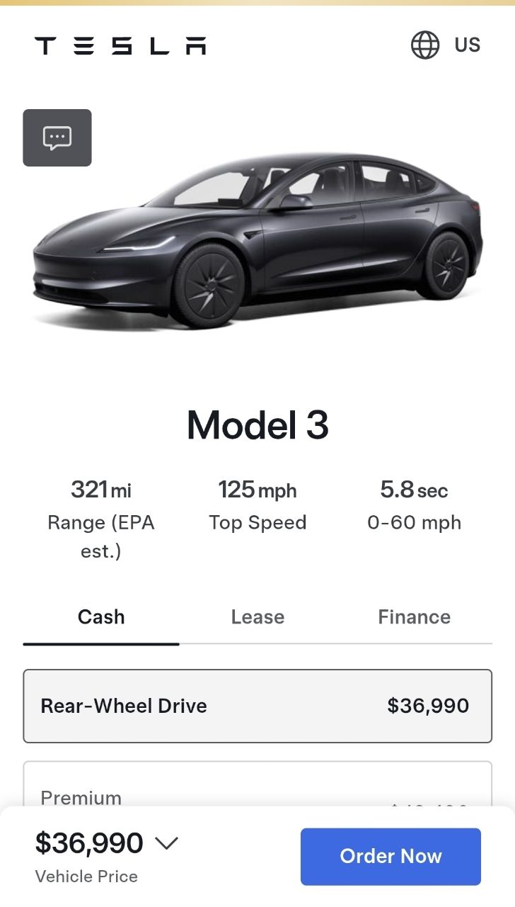 入門版model 3 只要36990美金