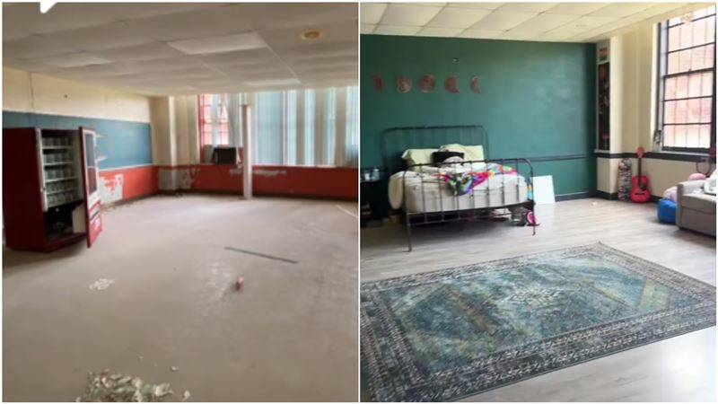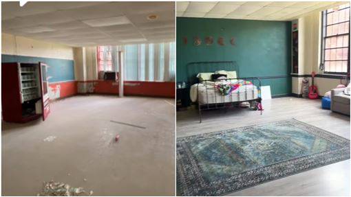 科利斯的女兒莎拉(Sarah)也搬進其中,最近更透過TikTok分享了家中的翻新成果。影片中展示了莎拉的房間,原本是一間破敗的教室,經過重新裝修後變成了一個舒適而現代的起居空間,地板重新鋪設,牆壁重新粉刷,給人一種全新的感覺,但從綠色的牆面和偌大的落地窗、方正的格局,不難看出前身是個教室。