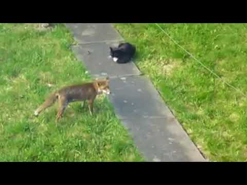 Fox vs cat. Curious fox and fearless cat. - YouTube