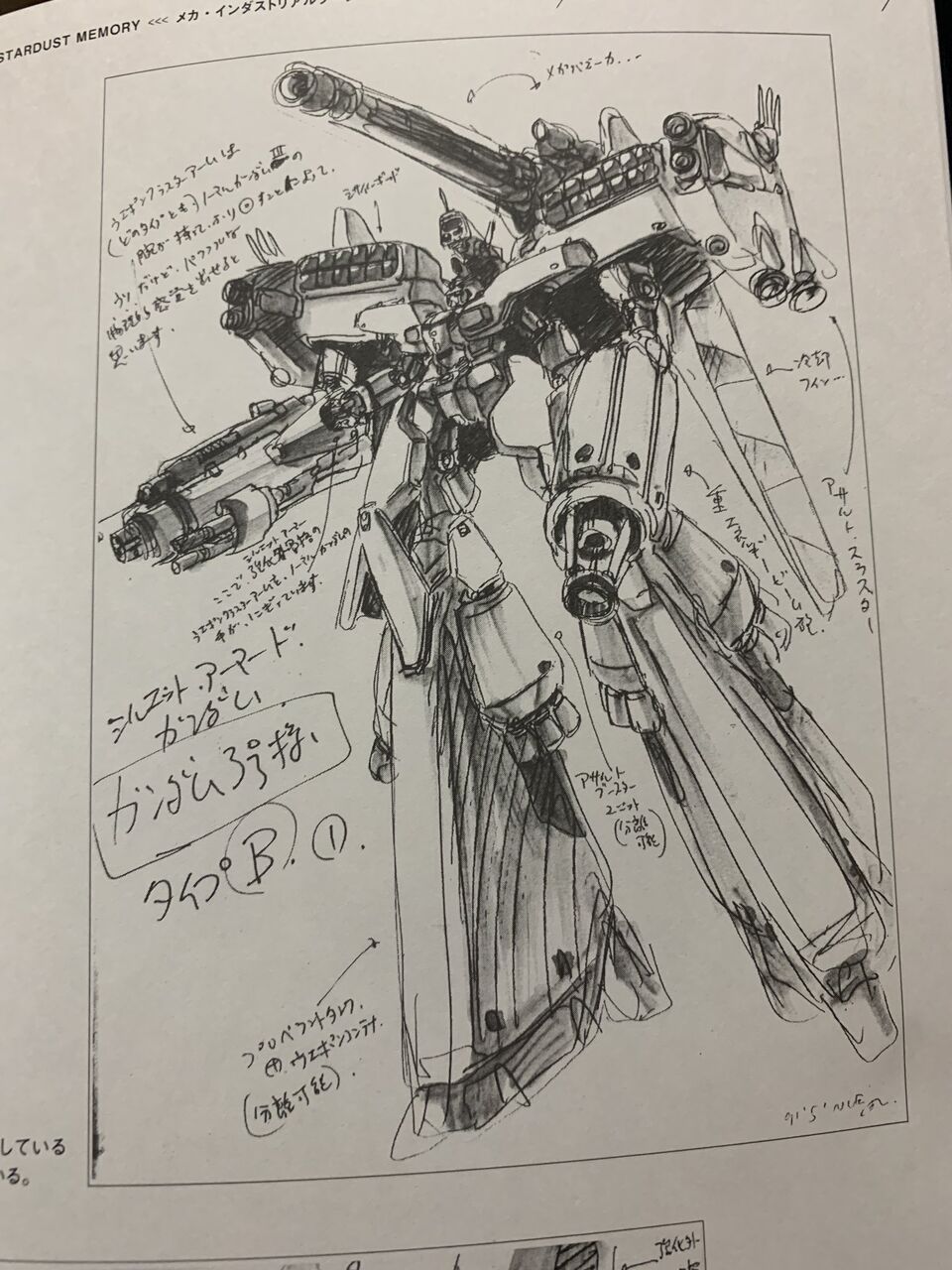 連載当初は設定資料をいただいて描いてましたが、後半になると漫画の制作がアニメに追いついてしまい、新しいMSの資料がまにあわなくなりました。正式名シャイターンは初期設定ではギギム(仮名)だったのです。正式名称発表を待つ時間がなかった。