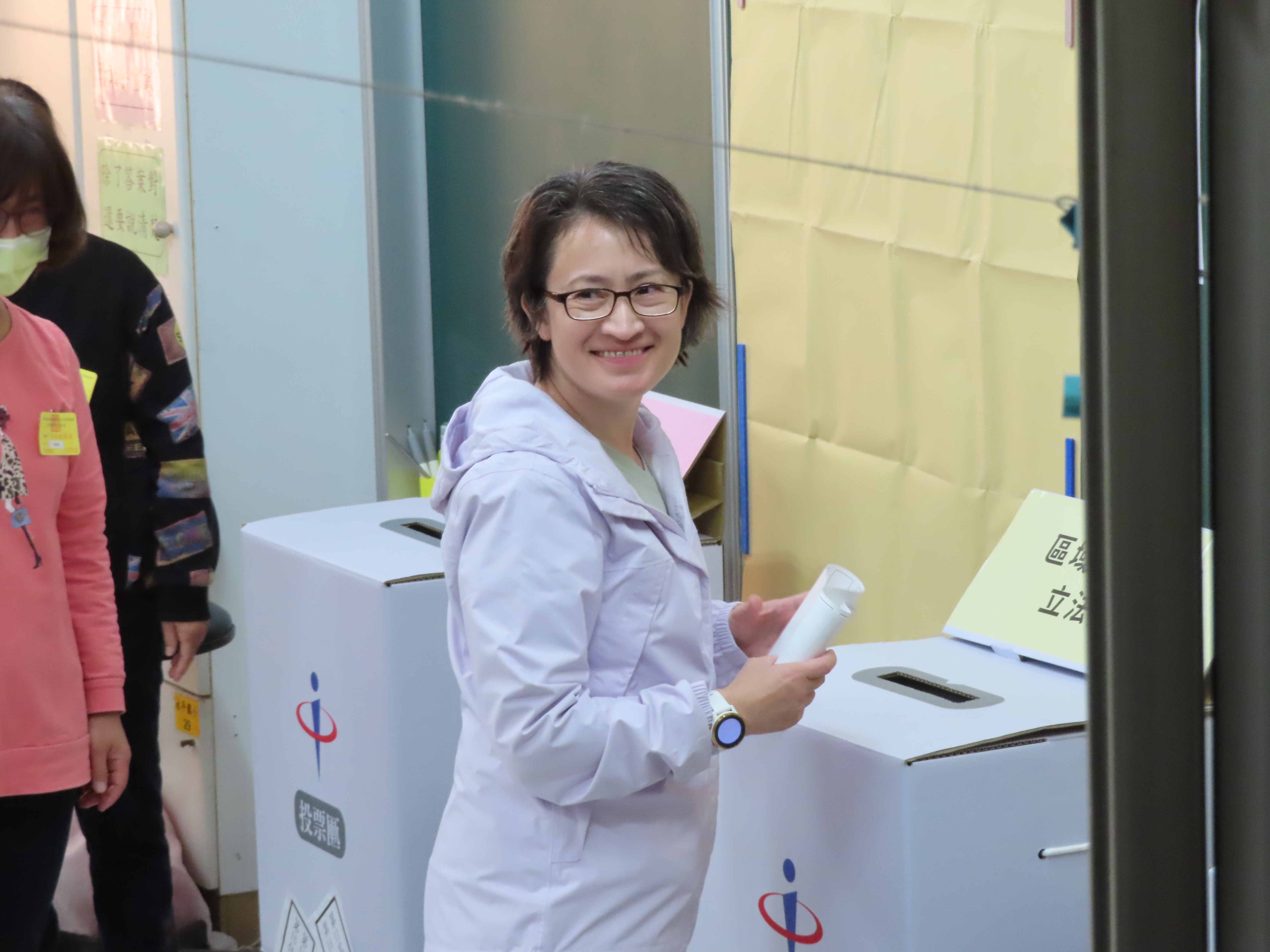 快訊/蕭美琴輕裝現身永平國小投票 親切與民眾打招呼