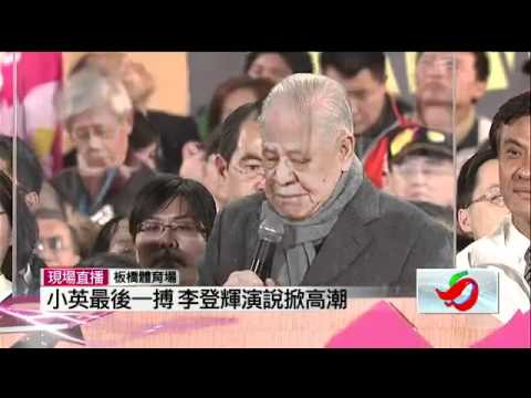 台灣民主守護者、前總統李登輝今(13)日晚間9時15分現身民進黨總統候選人蔡英文在新北市板橋的造勢晚會,站出來力挺蔡英文,高呼這將是自己「最後一次拜託」、「台灣交給你們了」,拜託選民給台灣一次幸福的機會,讓蔡英文帶給台灣人民幸福。