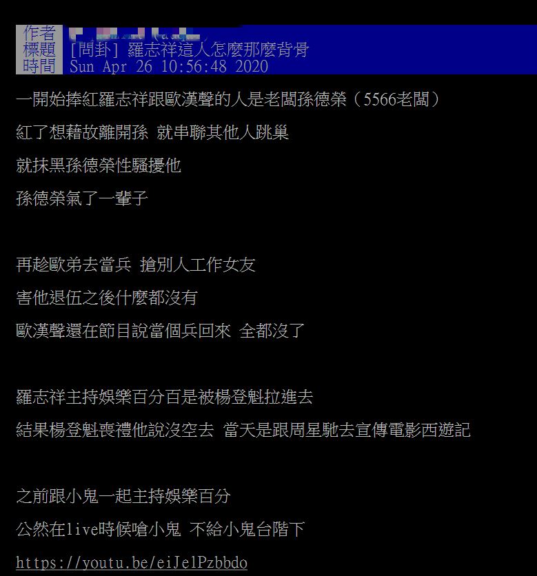 PTT有網友就直呼「羅志祥這人怎麼那麼背骨」,痛批「這個人怎麼從出道就各種背骨啊