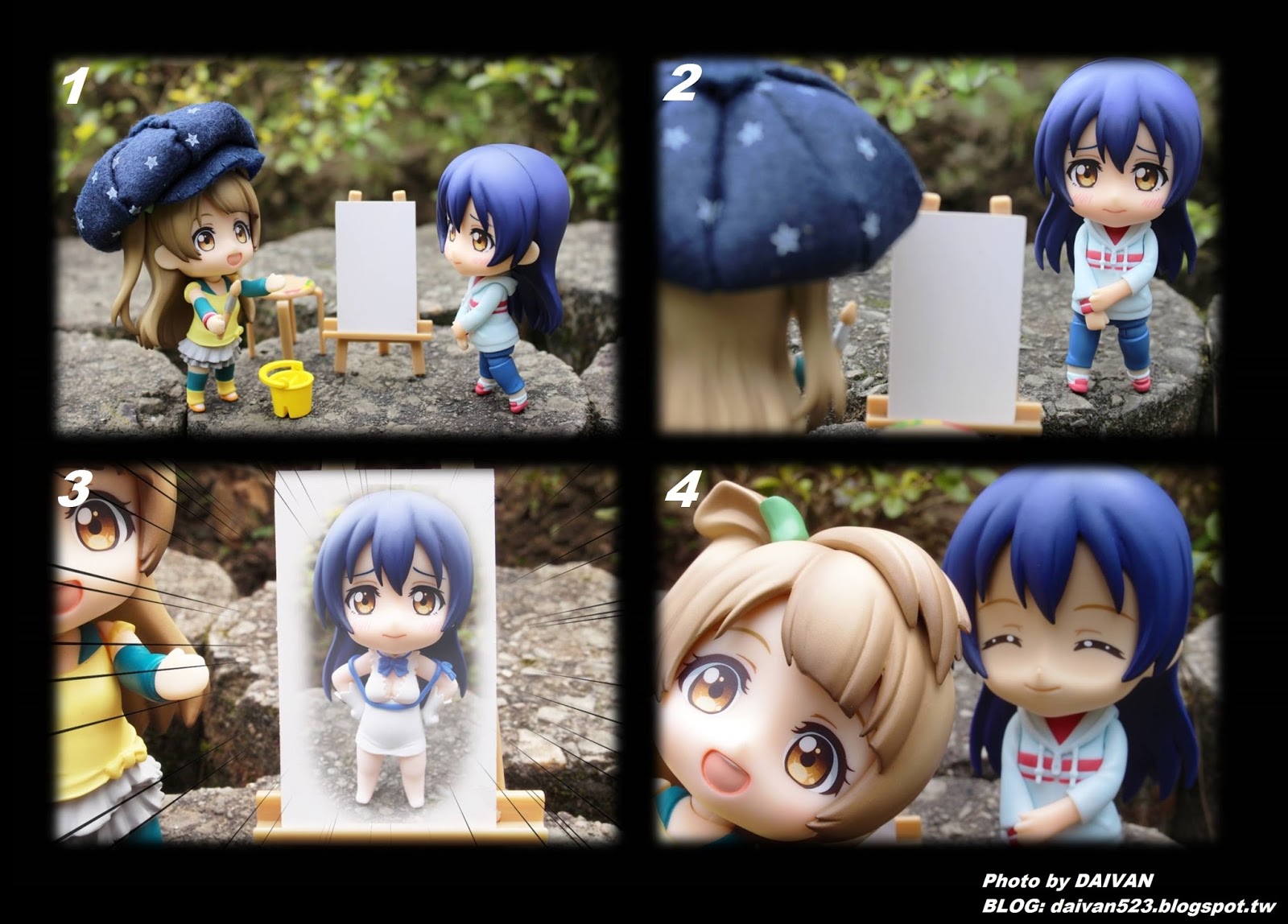 初次嘗試四格,點子是轉到畫具轉蛋後想到的。原本是想要單純的幫海未畫畫,不過覺得