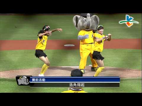 象隊由王勝偉為接球捕手,黃仕豪打擊,浩角翔起開完球後,一個熊抱王勝偉,一個新娘