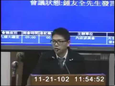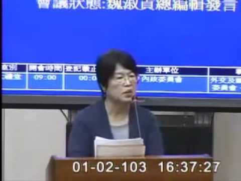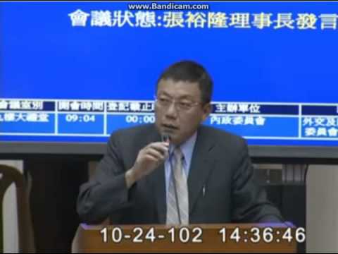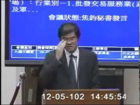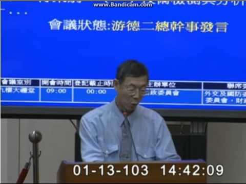 主題:貿易協定、大陸政策、智慧財產權、醫療、文化、運動場、通訊 時間:102/10/02 (三) 09:04~12:17 完整文本: 完整影片: